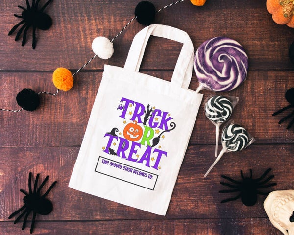 Deze tasjes zijn perfect om al het lekkers tijdens Trick or Treat in op te bergen. En met jouw naam erop weet iedereen van wie het is!
