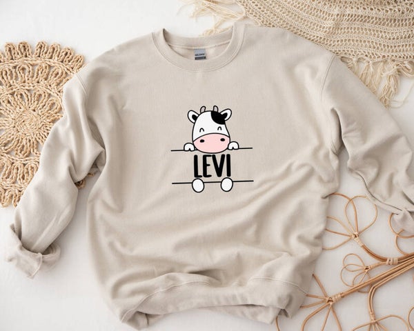 Leuke sweater met dieren print waar de naam van het kind in is verwerkt.