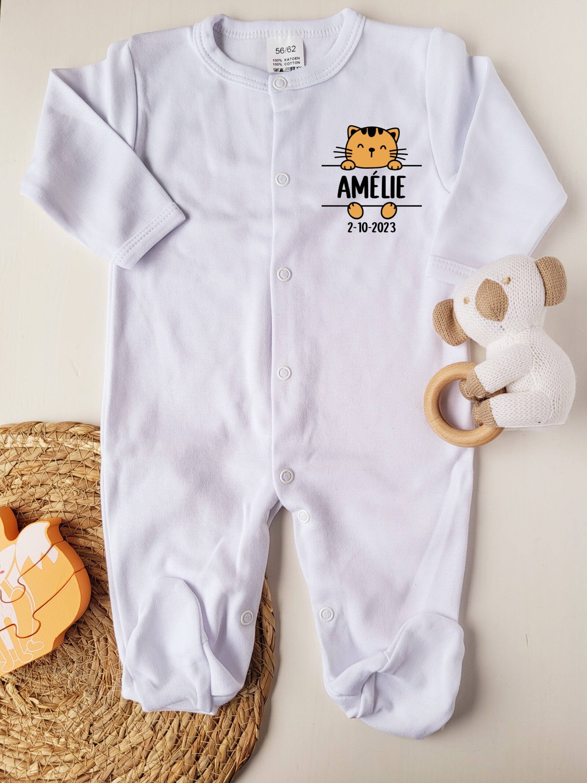 Lief boxpakje met voetjes met een Boerderijdierenprint met naam en geboortedatum.