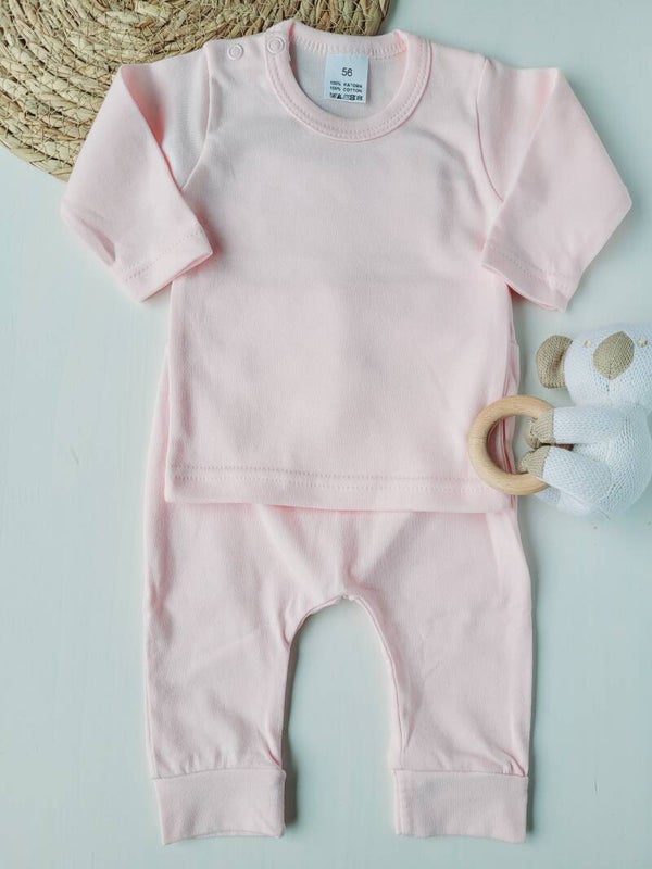 Verkrijgbaar in de kleuren licht rose en petrol en de maten 56 t/m 74