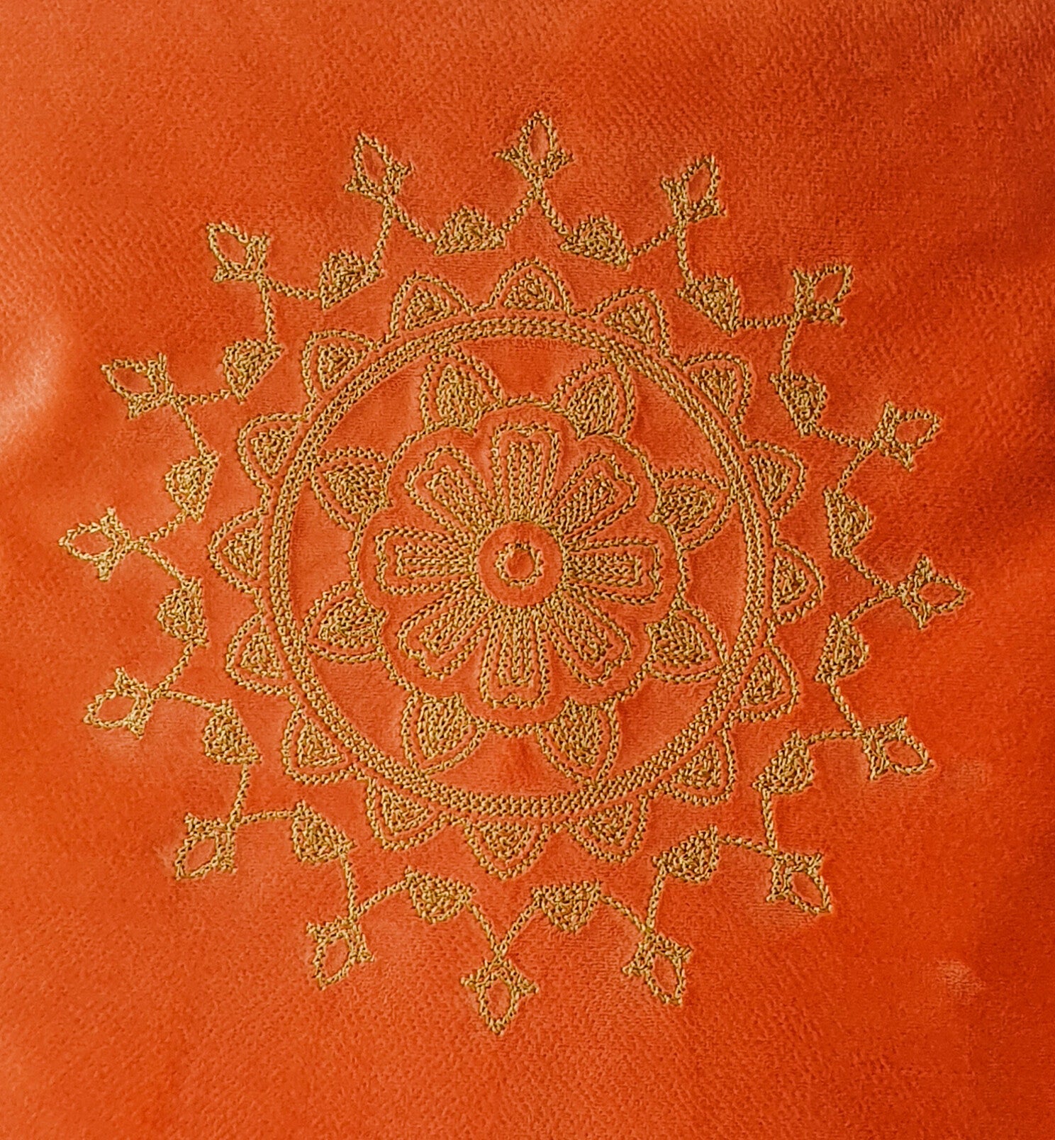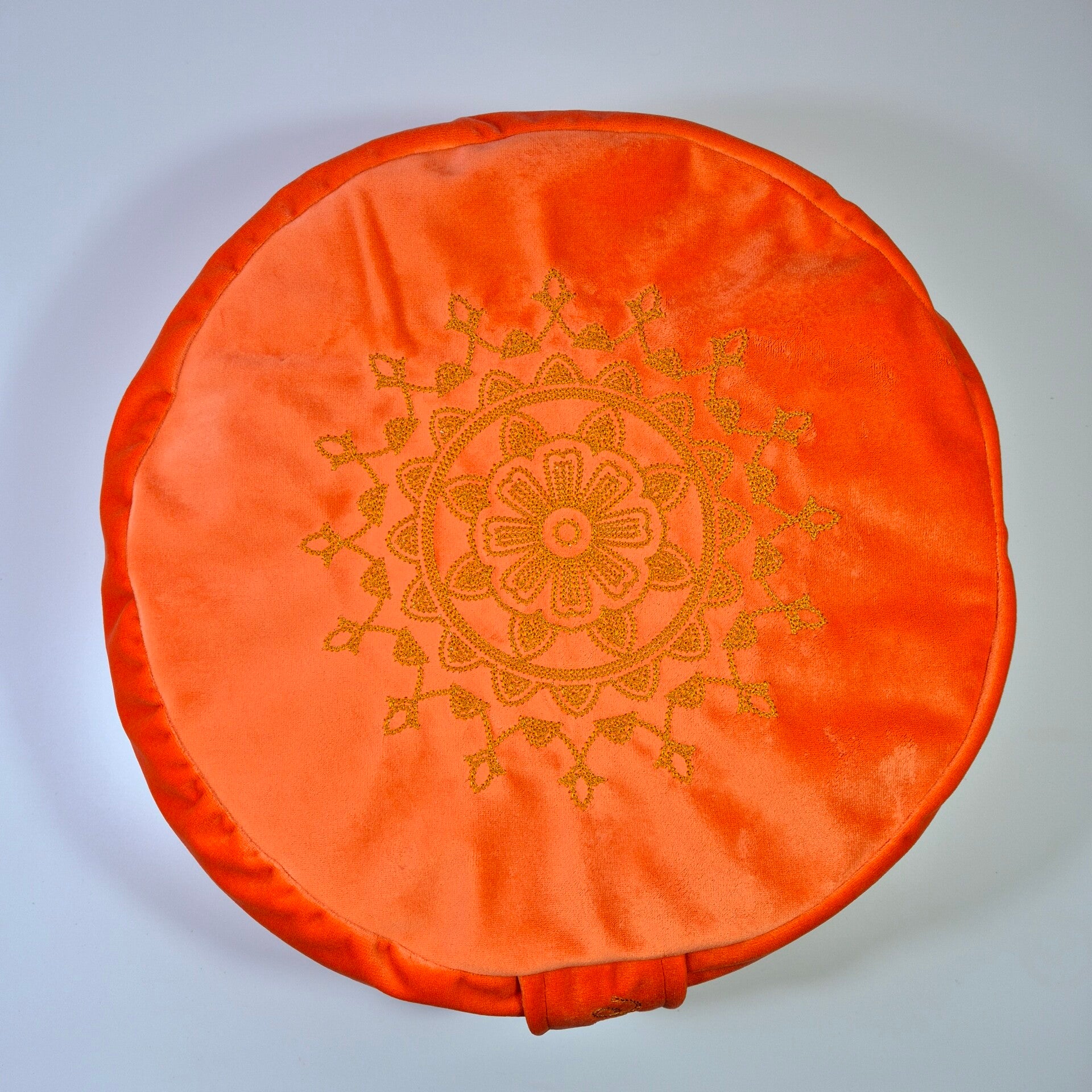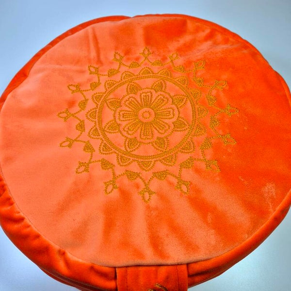 Dit meditatiekussen is gemaakt van heerlijk zacht fluweel en heeft een mooie geborduurde mandala.